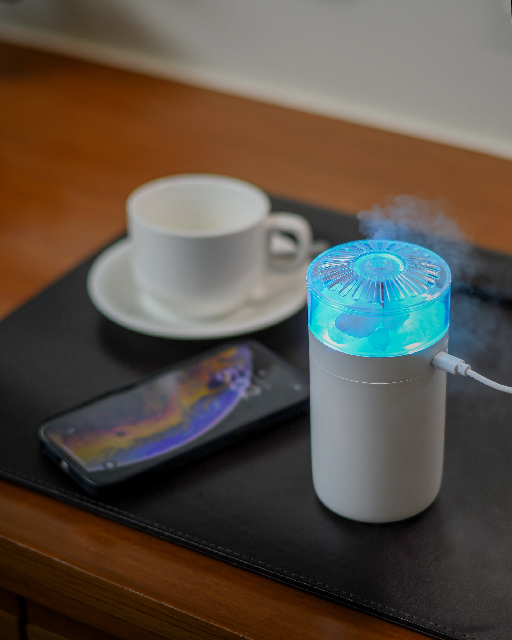 Utilizing ultrasonic technology, the humidifier releases a fine, cool mist, hydrating your skin and improving air quality. Say goodbye to dry, stale air and hello to a fresher, healthier environment.